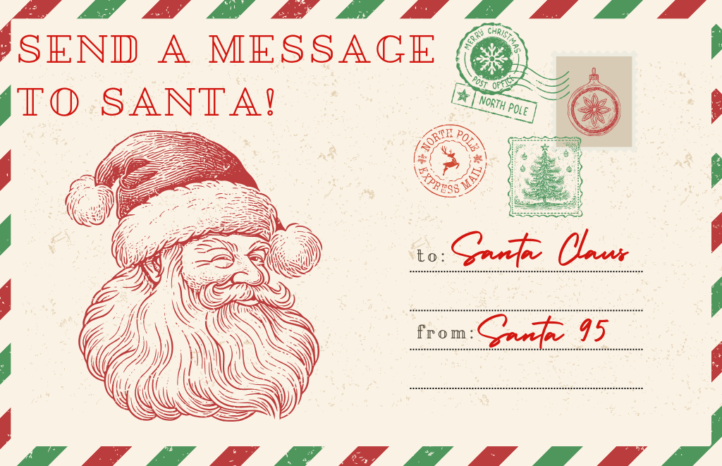 Download the Santa 95 app now, leave your message for Santa and make your Christmas wishes come true! Make sure we know your child’s name in case Santa has time to write back. 😉