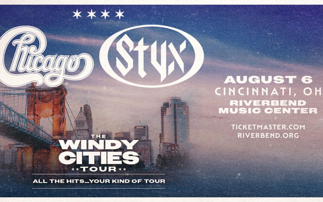 Music icons Chicago and Styx bring “The Windy Cities Tour – All The Hits… Your Kind of Tour” to Riverbend Music Center on Thursday, August 6th, 2026