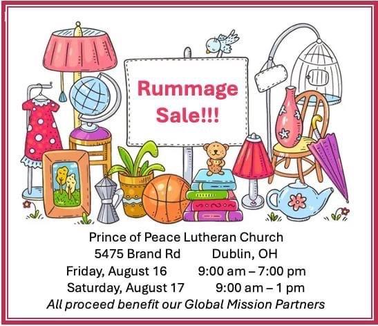 This is a not-to-be-missed rummage sale for great prices on gently used kitchenware, holiday decor, clothing, lawn & garden, books, games, toys and more! Don’t miss our bake sale.