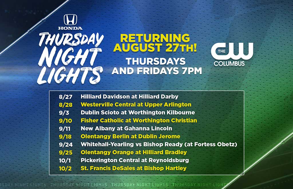 CW Columbus 2020 Honda Thursday Night Lights Schedule Announced