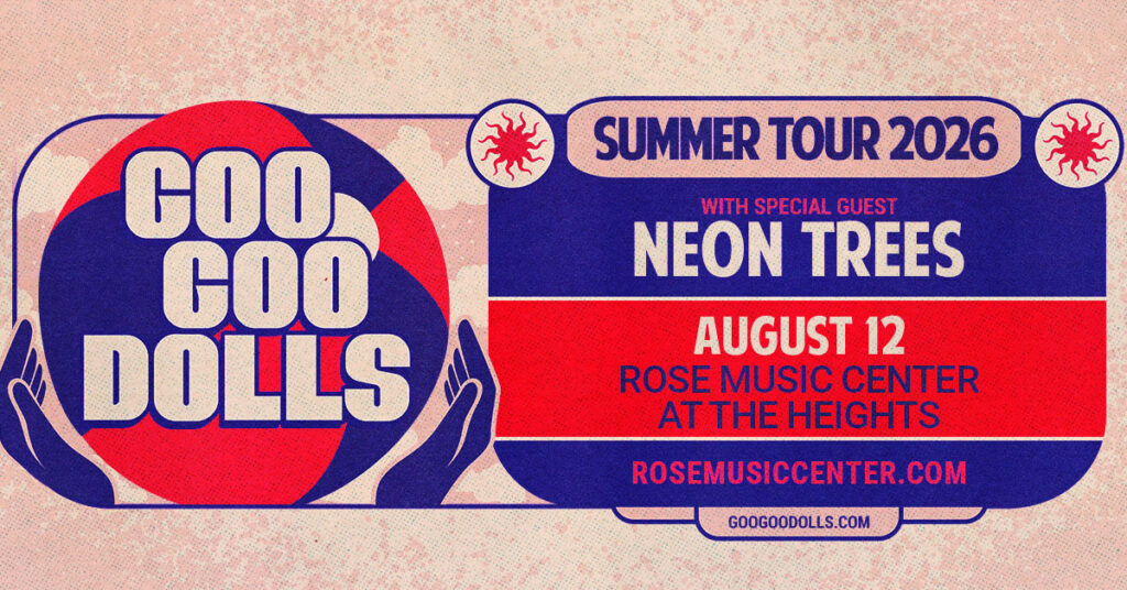 Goo Goo Dolls bring their “Summer Tour 2025” to Rose Music Center at The Heights with special guest Neon Trees on Wednesday, August 12th, 2026