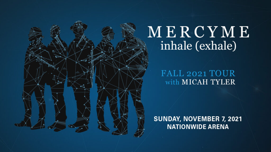 Nashville, TN…. May 3, 2021 – GRAMMY® nominated, multiple American Music Award, Billboard Music Award and Dove Award-winning band MercyMe has announced their fall 2021 inhale (exhale) tour. MercyMe will hit 30 cities across the U.S. including Columbus on November 7 joined by artist Micah Tyler. Tickets go on sale Friday, May 14 at 10AM through Ticketmaster.