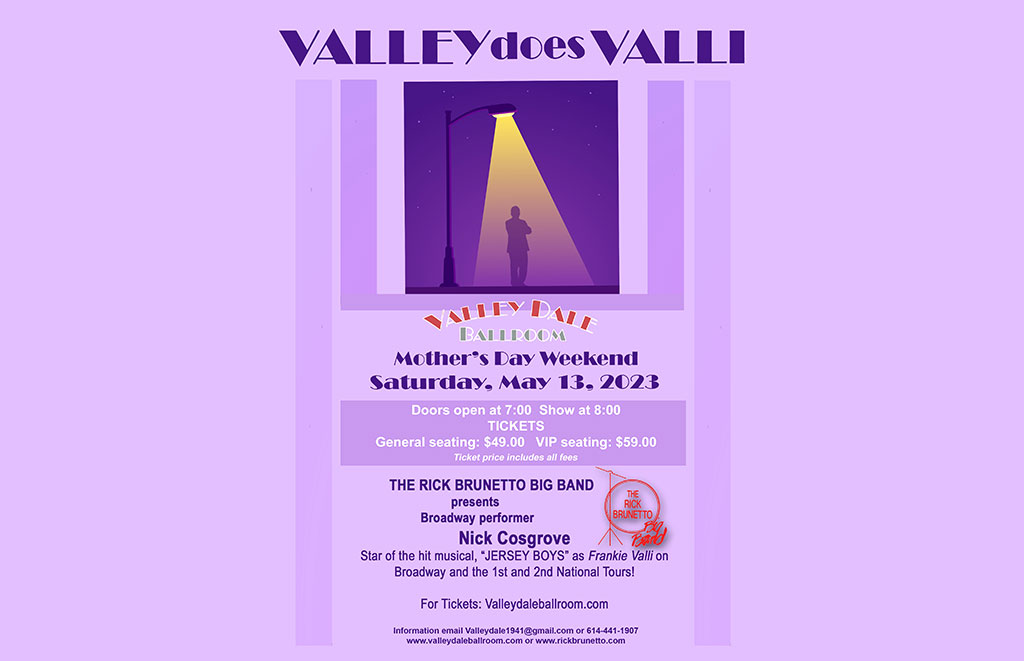 The Valley Dale Ballroom (VDB) Presents a fresh Mother’s Day event. VALLEY does VALLI: The melodies and memories of Frankie Valli his Four Seasons and Broadway’s JERSEY BOY’S.