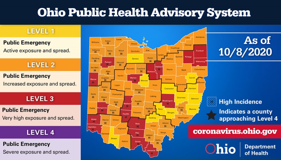 He said he and Lt. Gov. Jon Husted will begin talking with community leaders Wednesday by telephone to develop strategies, starting with Cuyahoga, Hamilton and Clark counties, the three counties on the “watch list,” in danger of being the first to be elevated to Level 4 on the state’s Public Health Advisory system, meaning they would be experiencing “severe exposure and spread.”