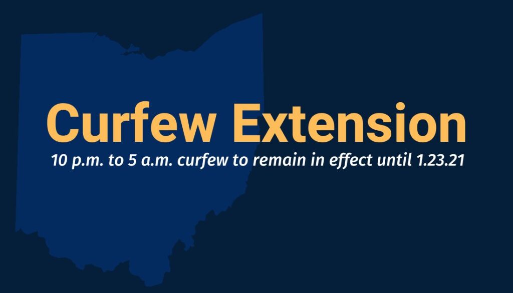 COLUMBUS – A statewide curfew encouraging Ohioans to stay home between the hours of 10:00 p.m. and 5:00 a.m. has been extended for three weeks, Gov. Mike DeWine announced Wednesday.