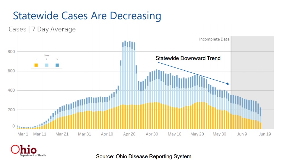 DeWine says the uptick is a reminder that the coronavirus is still active in Ohio and people still need to take precautions but credited the precautions Ohioans have taken for preventing larger resurgences of the virus seen in other states.