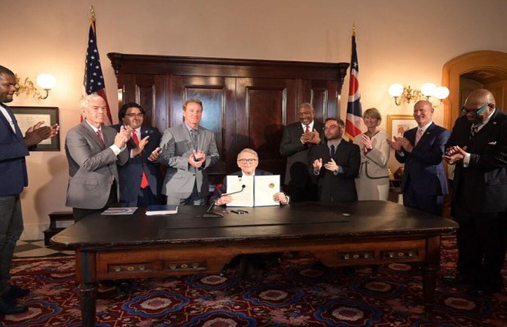 Republican Gov. Mike DeWine signed an executive order that would bring Ohio up to speed with more than a dozen other states who now prevent universities or college athletic conferences from punishing athletes if they are compensated based on their sports performance.