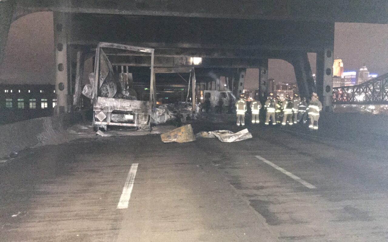 Traffic began moving on the Brent Spence Bridge Tuesday afternoon after a fiery truck crash closed it on Nov. 11.