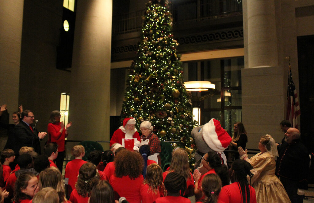 The program in the Statehouse Atrium consists of a short ceremony in which Governor Mike DeWine will give introductory remarks, light the historically decorated tree and welcome Santa and Mrs. Claus.