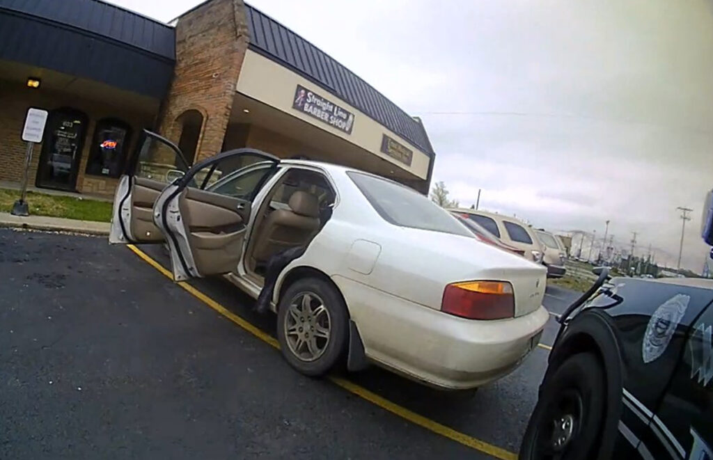 Officers pulled over the 2015 GMC Yukon, which had been reported stolen, and as they got out of their cruiser, the driver accelerated, pinning one of the officers between the cruiser and the suspect vehicle.
