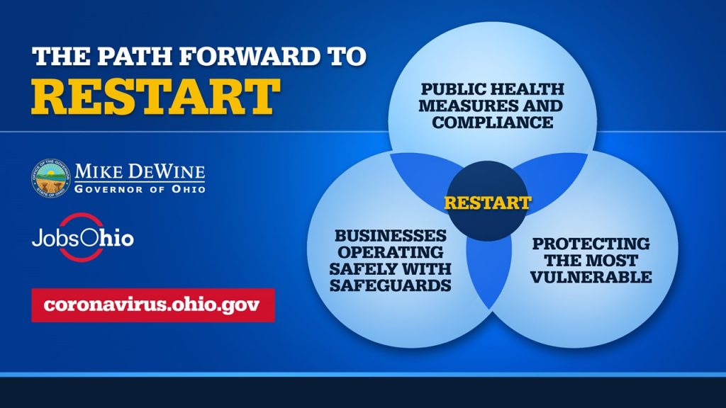 The easing of those restrictions will depend on achieving a balance between compliance with public health measures, safe business operations and protections for those at highest risk from coronavirus infection, DeWine said (see illustration above).