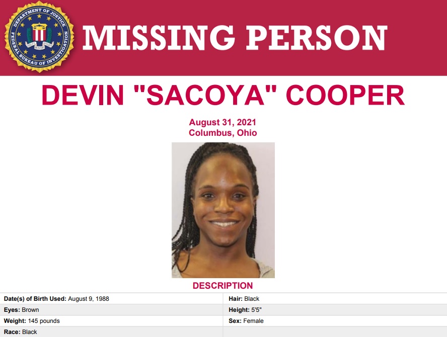 Devin Cooper, who also goes by Sacoya, was last seen leaving her North Side home to go to the corner store on August 31, 2021, and never returned home, according to the FBI.