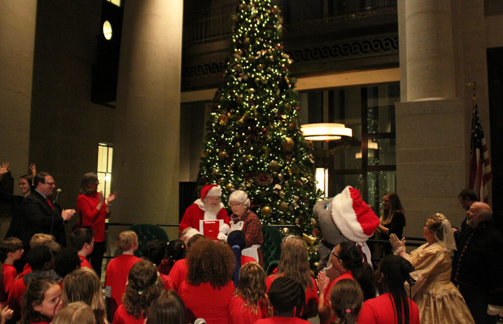 The free festival in the Statehouse Atrium consists of a brief program as Gov. Mike DeWine and First Lady Fran DeWine will welcome Santa and Mrs. Claus and light the historically decorated Ohio Statehouse holiday tree.