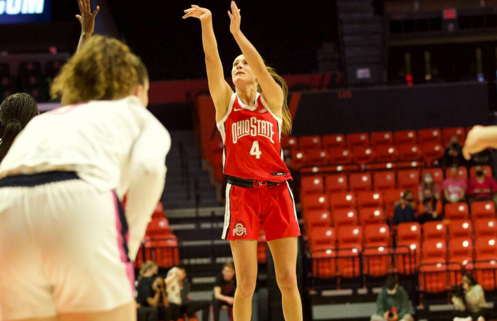 Jacy Sheldon led the way for Ohio State (19-4, 11-3 Big Ten) with 22 points, Rikki Harris scored a career-high 17 points, with five three-pointers, Rebeka Mikulášiková finished with 14 points and Taylor Mikesell with 13 points.